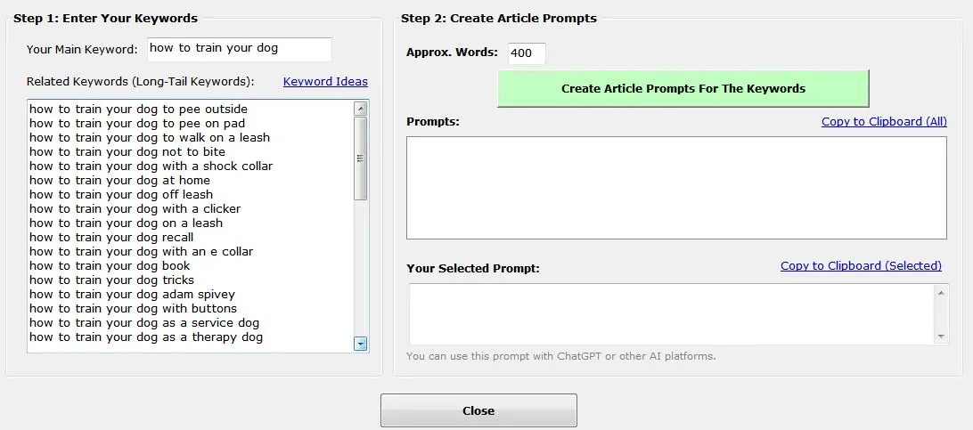 After This, Click The Following Button To Create The Article Prompts For Your Keywords...
